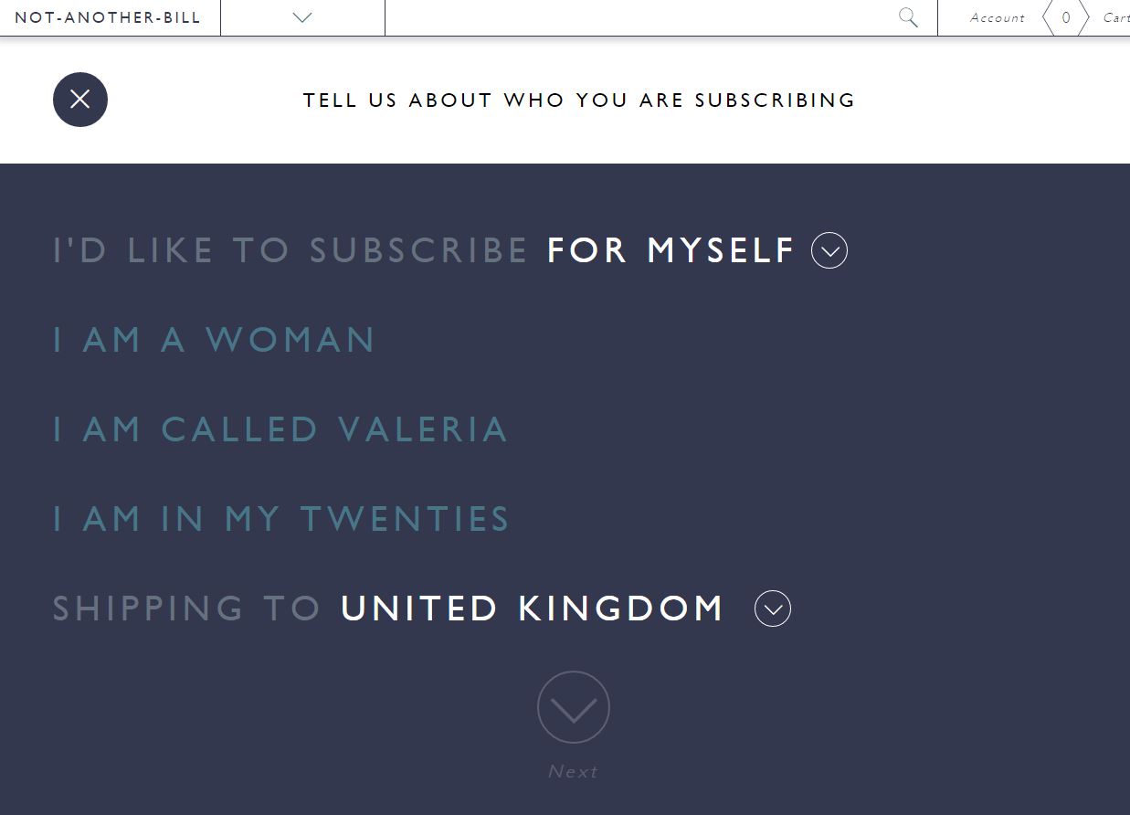 They don’t quite use the mad lib format, but it’s not far too – you just have to complete sentences to make sure that they send you things that you’ll like.